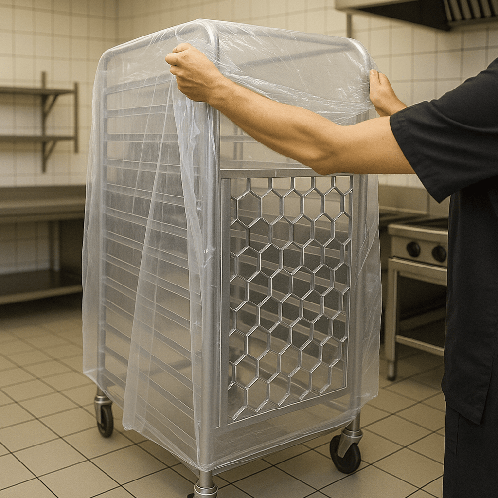 Der Wandabroller für Schutzhüllen ist die ideale Lösung, um Schutzhüllen schnell und effizient über Rollwägen zu ziehen. Das robuste Gestell und der Abrolldorn aus rostfreiem Edelstahl gewährleisten Langlebigkeit und Hygiene in der Küche. Passend für alle Hüllen auf Rolle bis zu 800 mm Breite, spart der Abroller wertvolle Zeit und schont Ihre Mitarbeiter durch einfache Handhabung. Perfekt für Großküchen und Catering-Betriebe, die oft und viel abdecken müssen.
