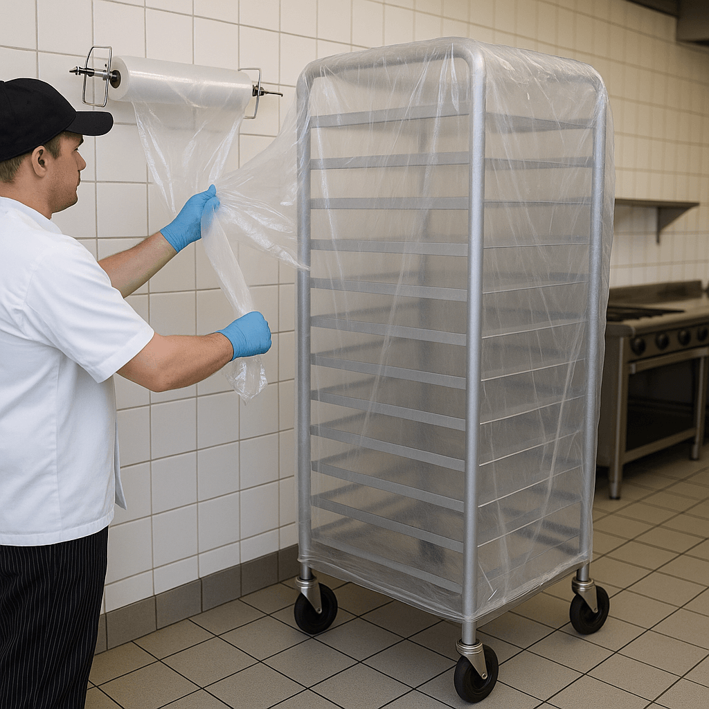 Unser Wandabroller für Schutzhüllen wurde speziell entwickelt, um den täglichen Arbeitsablauf in größeren Industrieküchen deutlich zu optimieren. Montiert an der Wand, nimmt er nur minimalen Platz weg und bleibt stets griffbereit. Der Abrollerhalter fasst Trolleycover Hüllenrollen mit einer Breite bis 800 mm. Dank des hochwertigen Edelstahls ist der Abroller korrosionsbeständig und leicht zu reinigen – ideal für den hygienischen Einsatz in Fleischereien, Großküchen und Catering-Betrieben.